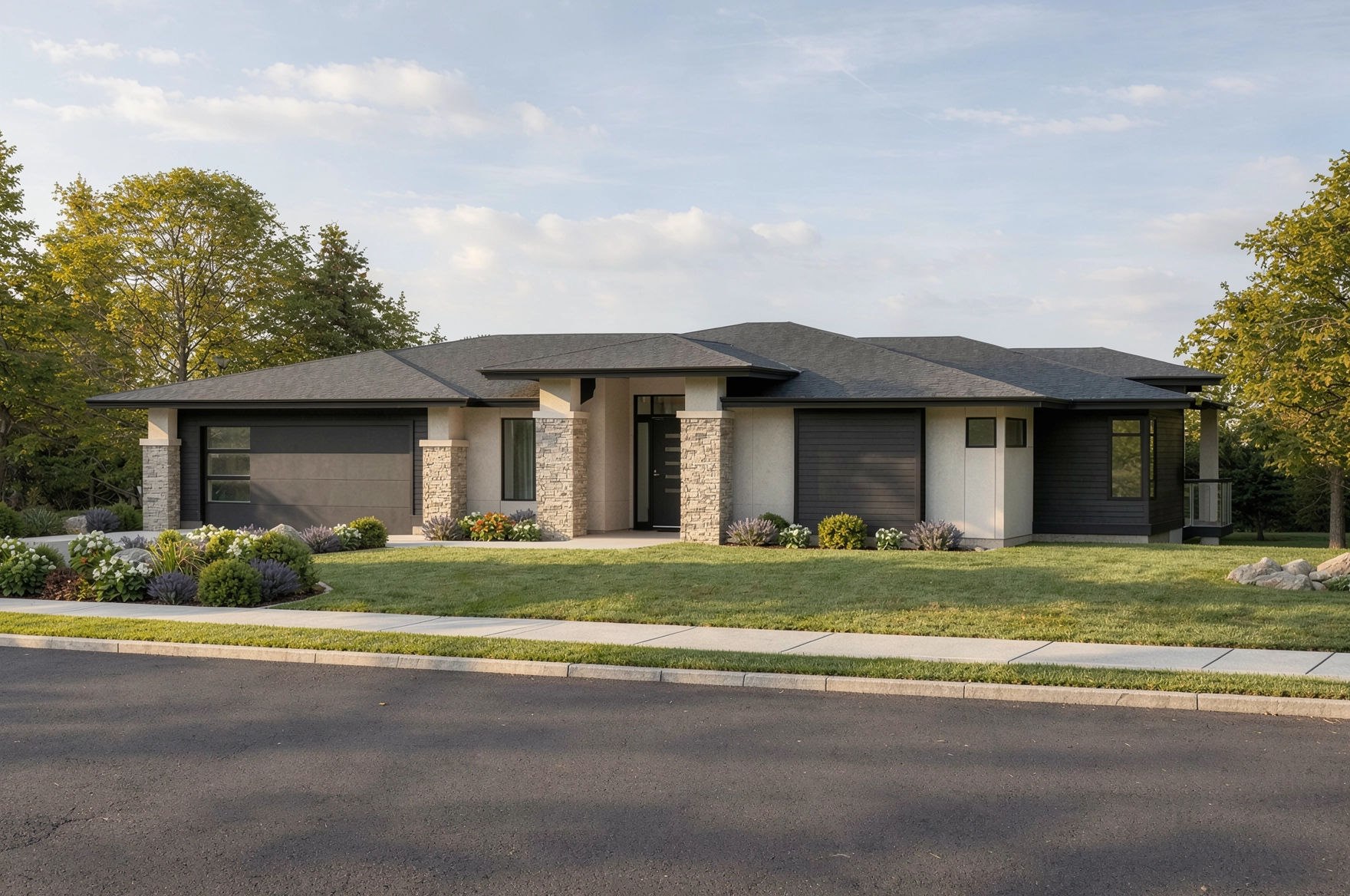 Plan 1-2-695 offers stylish one-level living with thoughtful extras. This modern 1-bedroom rancher features a flexible layout, open-concept great room, and a spacious covered back deck, making it ideal for entertaining or relaxing outdoors.